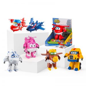 Las figuras transformables de los Super Wings son juguetes basados en los personajes de la serie de dibujos del mismo nombre. Al ser transformables, pueden elegir jugar con ellos en forma de avión, helicóptero o como robots. El uso de esos juguetes es muy sencillo para que en pocos pasos, y de forma autónoma, los niños y niñas transformen las figuras de avión a robot.