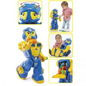 Fantástico robot con dos caras en el que puedes guardar los bloques de construcción Molto Blocks.