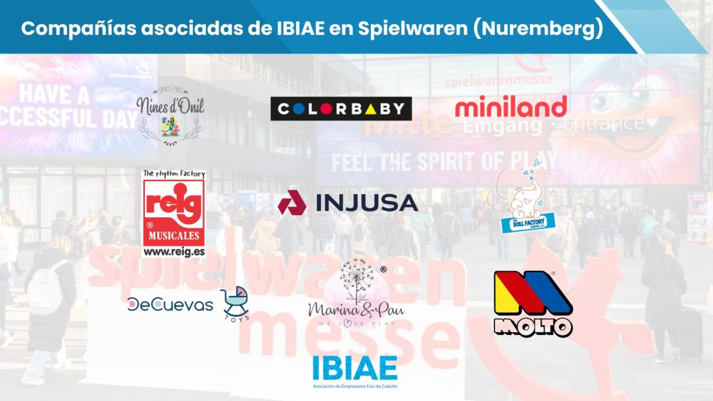 Las compañÃas asociadas a IBIAE (Asociación de Empresarios Foia de Castalla) están presentes en la 75ª edición de Spielwarenmesse, la feria internacional más importante del sector juguetero, que se celebra del 27 al 31 de enero en Núremberg. La participación de NINES D’ONIL, CLAUDIO REIG, COLORBABY, DE CUEVAS, INJUSA, MARINA & PAU, MINILAND, MOLTO y THE DOLL FACTORY evidencia la potencia industrial de la comarca y el papel dinamizador de IBIAE como representante del tejido empresarial local en foros internacionales.