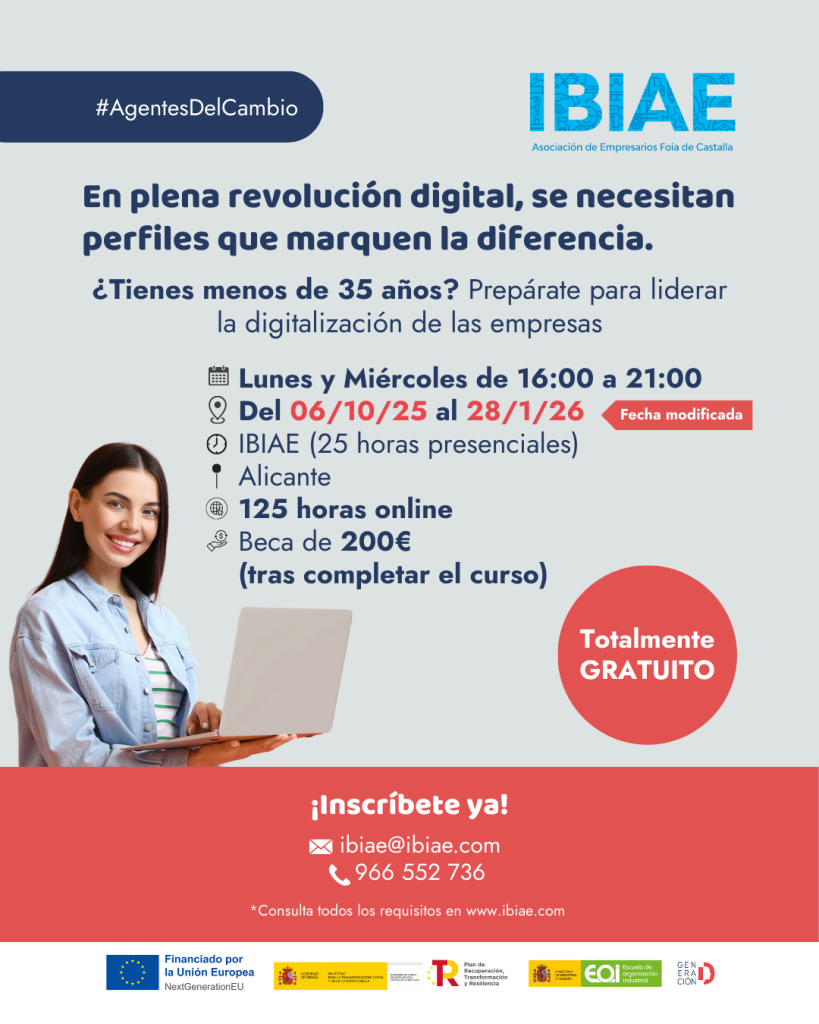 El programa Generación Digital: Agentes del Cambio ofrece formación intensiva en transformación digital dirigida a jóvenes desempleados o empleados en PYMES de hasta 35 años en la provincia de Alicante.