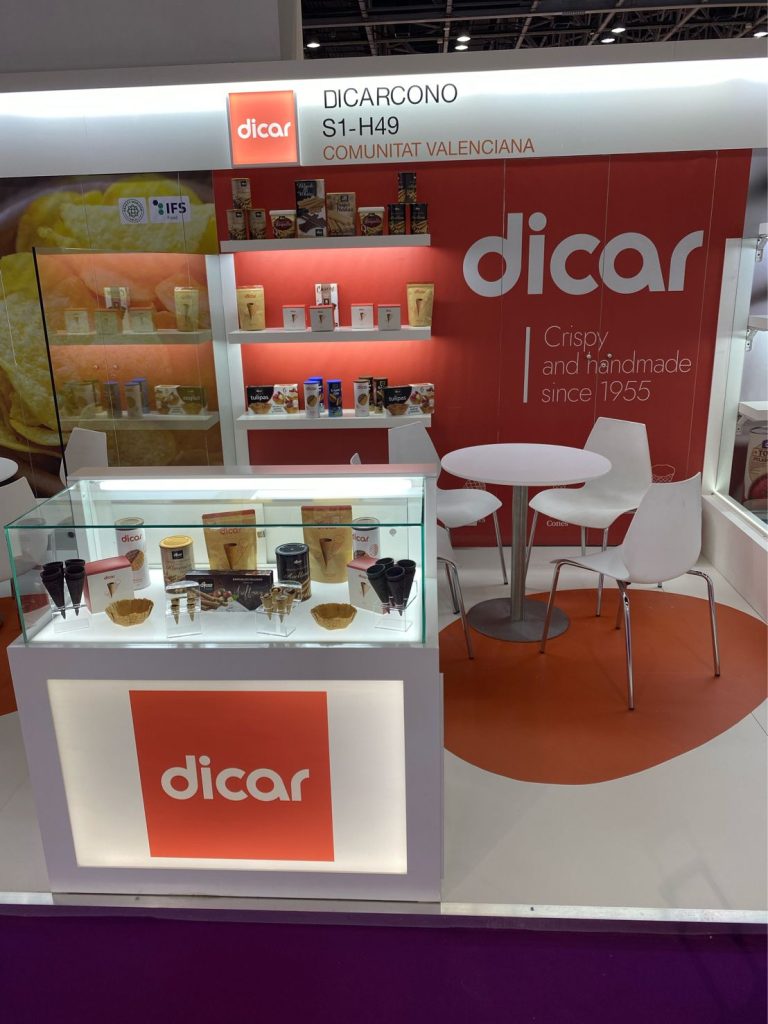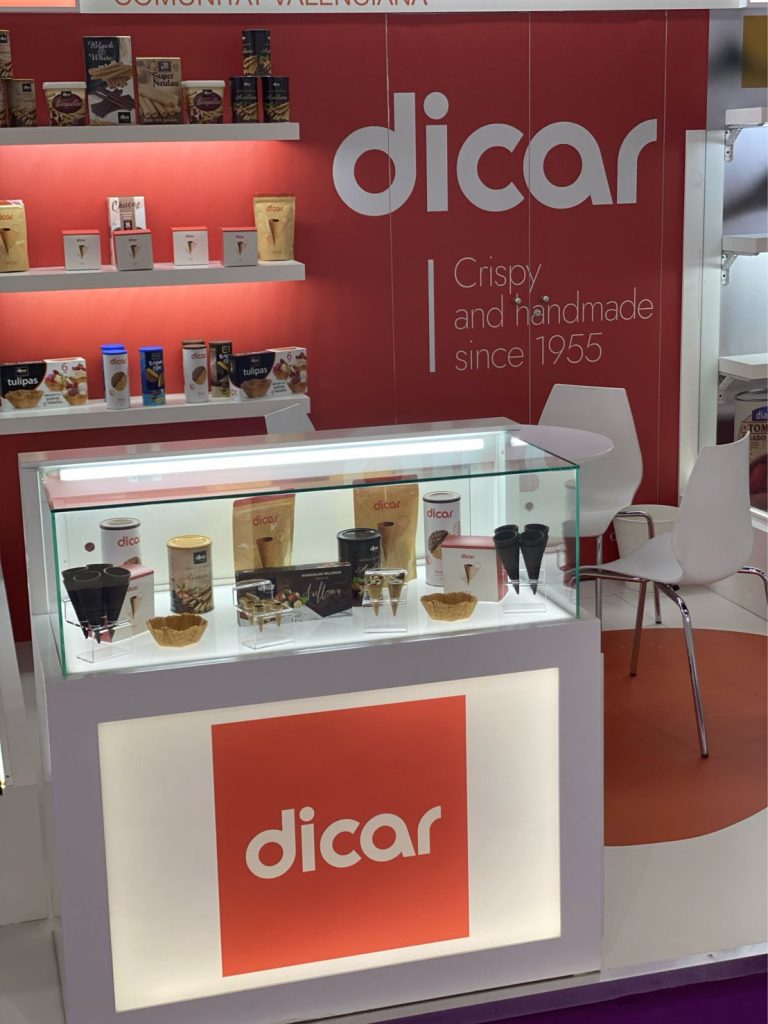 Uno de los representantes del sector galletero español que participa es la ibense DICARCONO, que aparte ofrece en su catálogo de productos para el sector del helado. En este sentido, DICARCONO muestra en un expositor elegante las mejores referencias de su catálogo para conquistar así a los clientes dentro de su proceso de internacionalización.
