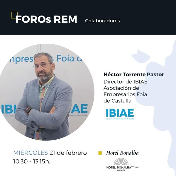 HomeEventos Foro REM febrero 7th, 2024 Eventos El director de IBIAE, Héctor Torrente, participa en el Foro REM como ponente. Lugar Fecha Inicio Fecha Fin Es Curso Hotel Bonalba (Mutxamel) 21/02/2024 21/02/2024 No Días y Horario Miércoles (10.30 horas) © IBIAE 2025. Todos los derechos reservados Produced by Evoteknic Este sitio web utiliza cookies para mejorar la funcionalidad, recopilar estadísticas anónimas de navegación e integrar contenido de otros servicios. Si continúa con la navegación entendemos que acepta su uso.Aceptar y cerrarRechazar las cookies no funcionalesMás información