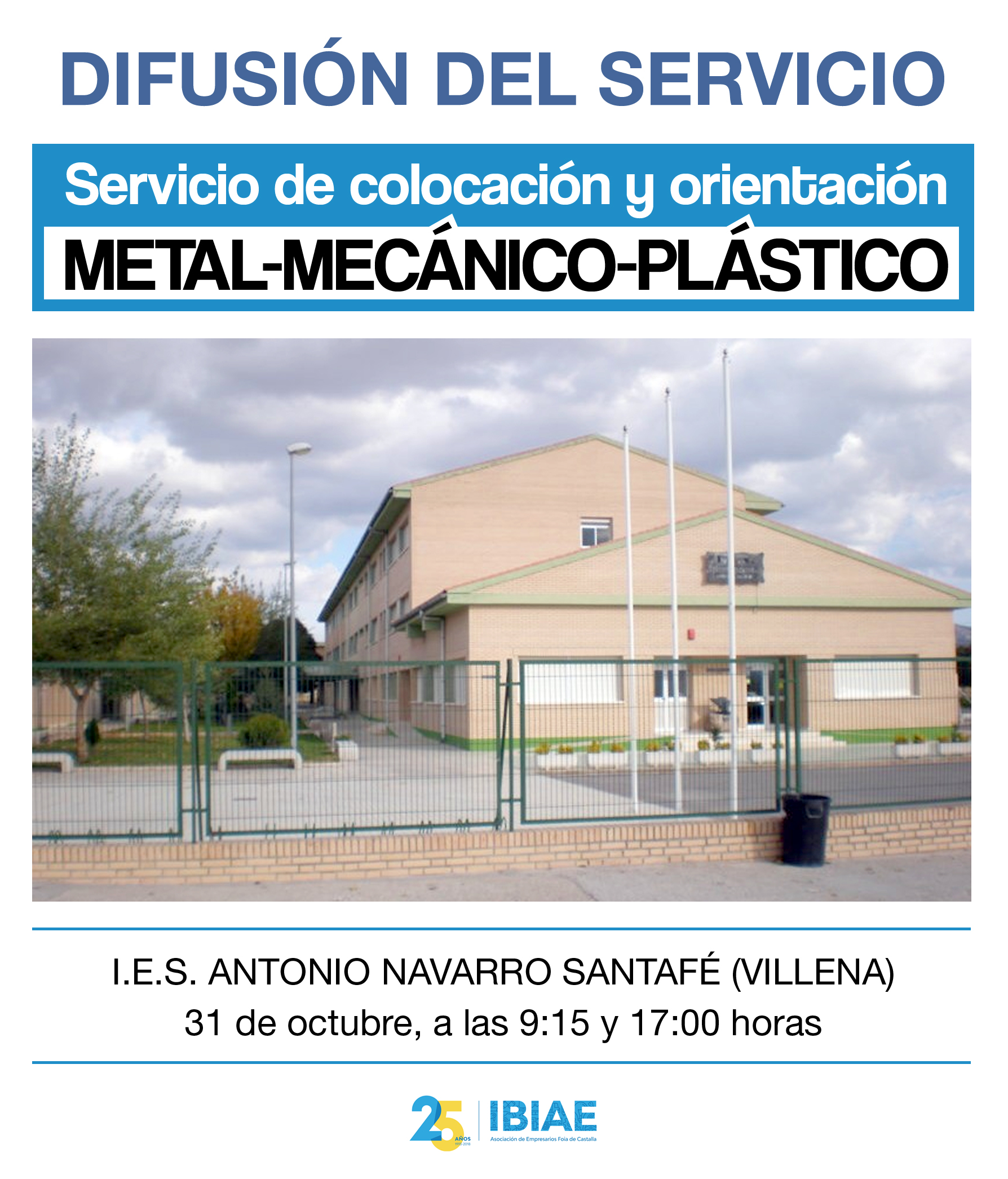 IBIAE continúa con su objetivo de difundir la importancia de la Formación Profesional para las empresas de la Foia de Castalla. Para ello, el director de la Asociación de Empresarios de Ibi y Comarca, Héctor Torrente, expondrá en el IES Antonio Navarro Santafé (Villena) la necesidad de mano de obra cualificada en el sector metal-mecánico-plástico de nuestras industrias.