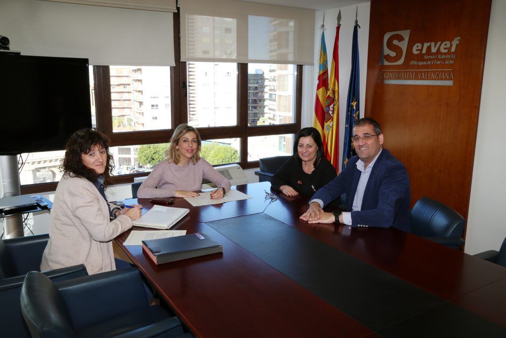 El director de IBIAE, Héctor Torrente, y la alcaldesa de Onil, Humi Guill, explicaron una preocupación especÃfica que tienen las empresas del sector de la muñeca de la Foia de Castalla tanto a la directora general de Labora, RocÃo Briones, como a la subdirectora general de Formación Profesional de la Generalitat Valenciana, Rosa López. La reunión, celebrada en Valencia, fue solicitada por Ia Asociación de Empresarios de Ibi y Comarca.