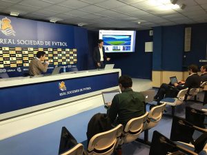 Del 4 al 7 de noviembre en Donosti, todos los ganadores, incluyendo a IRISTRACE, fueron invitados para la semana de inmersión con el club. Durante estos dÃas, además de disfrutar del encuentro entre la Real y el Sevilla, las compañÃas se reunieron con los responsables de la entidad para conocer cómo funciona internamente, saber cuáles son las necesidades tecnológicas y cómo pueden personalizar sus proyectos para Anoeta. Esta actividad tenÃa como objetivo detectar las posibilidades que existen para que estas compañÃas implementen un proyecto piloto en el renovado escenario donde la Real Sociedad disputa sus encuentros como local.
