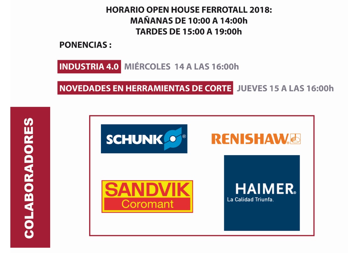 Por otro lado, durante las jornadas de puertas abiertas de FERROTALL, y de forma paralela, habrá un hueco especial para la formación mediante una serie de Master Class. El miércoles 14, a las 16 horas, la ponencia versará sobre la industria 4.0 y el jueves 15, en idéntico horario, la Master Class pondrá el foco en las novedades en herramientas de corte.