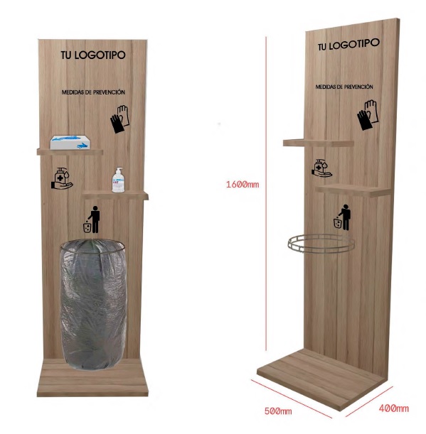 LCM NUMEN realiza varios modelos de un tótem higiénico ecológico, bien en melamina o en material metálico, y también de islas higiénicas. Del mismo modo, ha incorporado a su catálogo papeleras de cubo con pedal y un novedoso envase para gel hidroalcohólico pensado para hostelerÃa que no requiere dispensador externo.