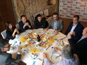 Con motivo del 25 aniversario de IBIAE, y en colaboración con Escaparate y Caixa Popular, a lo largo de los próximos meses se llevarán a término una serie de desayunos con empresarios de la Foia de Castalla. Los asistentes dialogan sobre temas de relevancia que forman parte del ámbito empresarial, pero que tienen una clara proyección en la sociedad. Posteriormente, sus conclusiones son trasladadas a la opinión pública para que sean conocidas por nuestro entorno. En esta segunda cita, y bajo el título ‘Internacionalización. Países atractivos y emergentes’, se analizó cómo las empresas han sabido canalizar sus productos o procesos hacia el mercado exterior.