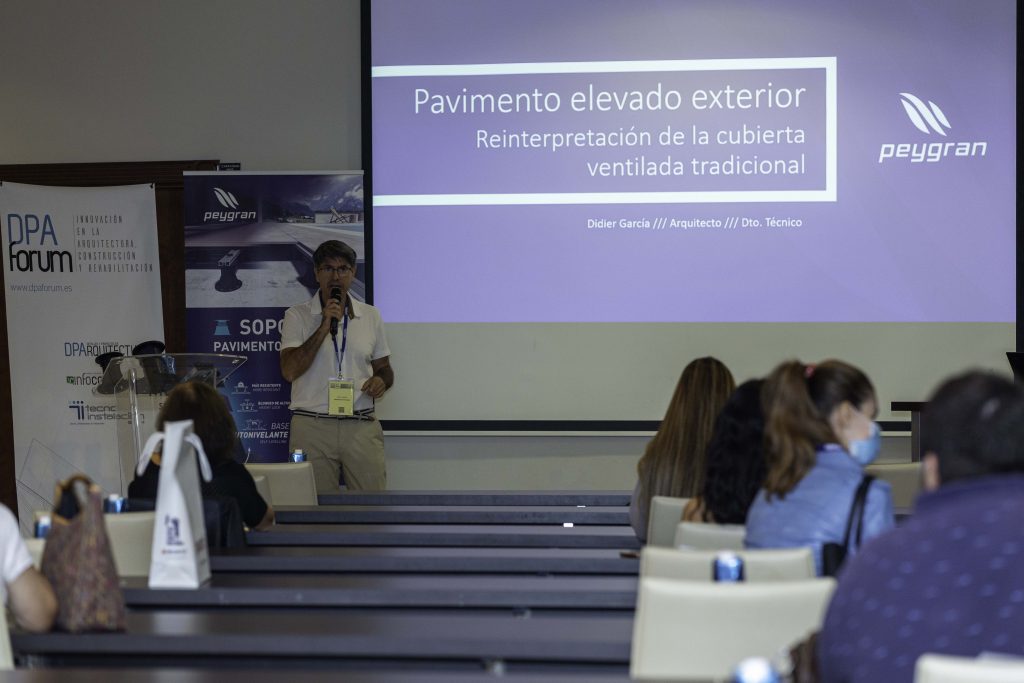 En el caso de PEYGRAN, la empresa ibense participó con una mesa expositora y ofreciendo una charla formativa sobre pavimento elevado exterior. Los asistentes completaron el aforo permitido en la sala.