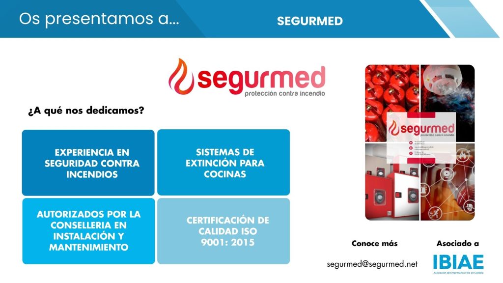 La empresa SEGURMED, asociada a IBIAE, desarrolla desde 2006 su actividad en el ámbito de la instalación y el mantenimiento de sistemas de protección contra incendios, contando con una amplia experiencia en el sector.