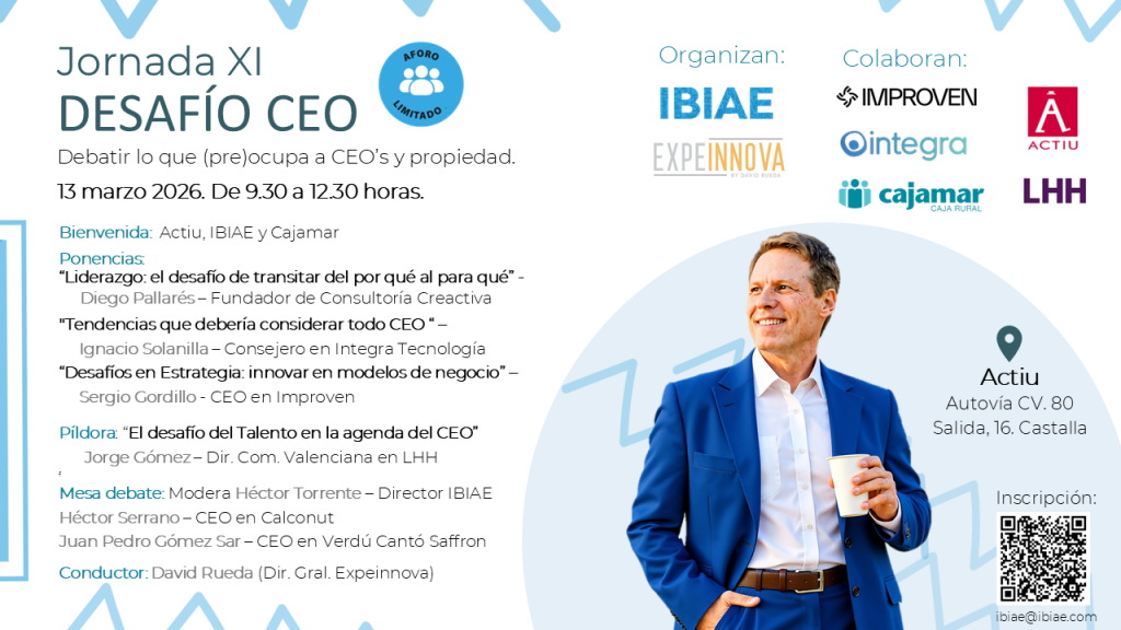 La jornada incluirá una mesa redonda titulada Lo que (pre)ocupa a un CEO, moderada por Héctor Torrente, director de IBIAE, en la que participarán CEOs y altos directivos de empresas del entorno provincial.
